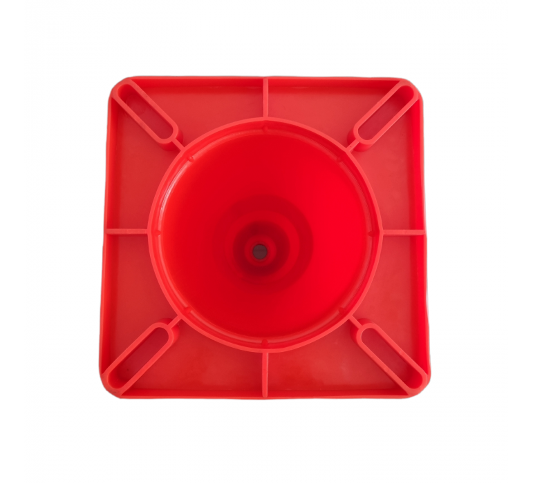 Características: Este cono Vial es de color naranja. Su particularidad es que lleva en la parte inferior una base cuadrada de 34 x 34 cm, que le da mayor estabilidad al cono evitando su volcamiento a causa de viento o bien por algún golpe moderado.