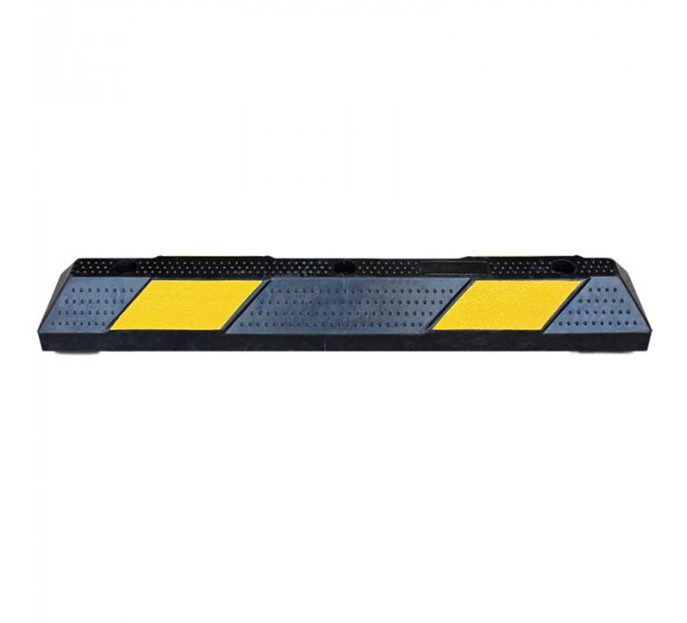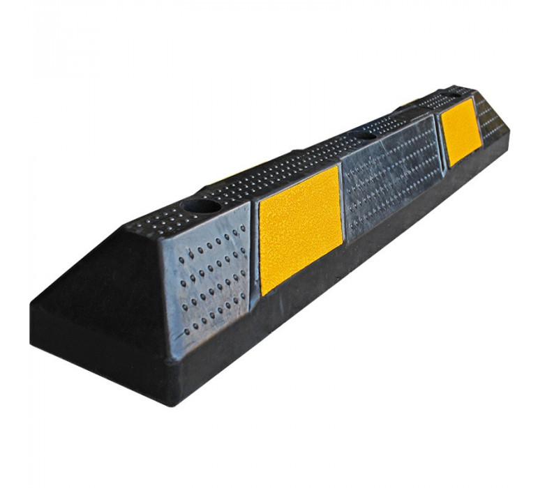Tope de estacionamiento fabricado en caucho. El tope contribuye en el aparcamiento adecuado de vehículos, ya que ayudan a señalizar y utilizar apropiadamente el espacio disponible. Son empleados en cualquier lugar destinado al estacionamiento de vehículos, mejorando así la organización y seguridad vial.